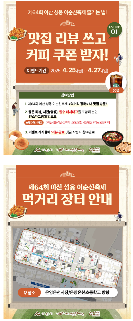 ● 제64회 아산 성웅 이순신축제 먹거리 장터에서 내가 찾은 맛집 리뷰 쓰고 커피 쿠폰 받자